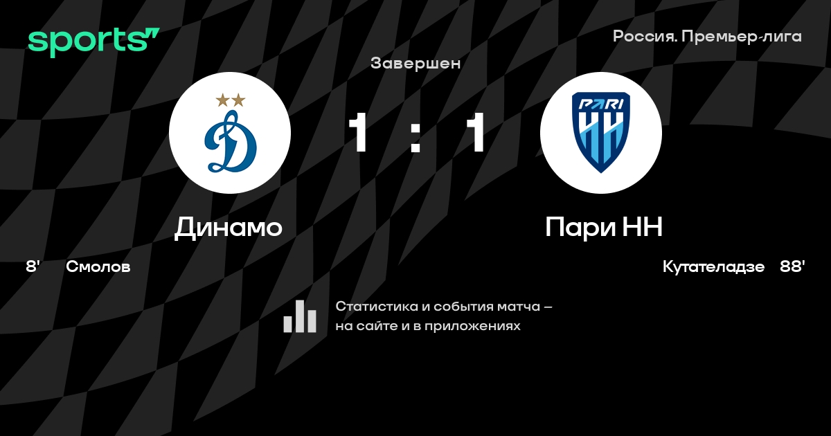 Динамо – Пари НН: Динамо не проигрывает в 6 из 8 последних матчей против этого соперника