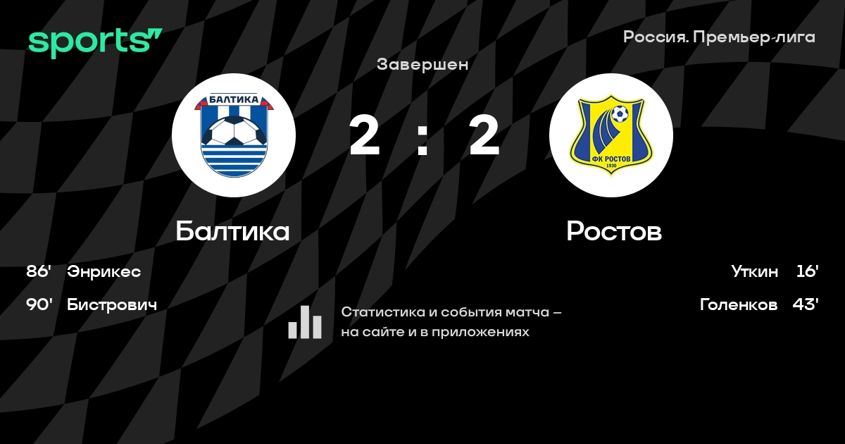 Балтика – Ростов: Балтика не проигрывает в 8 из 9 последних матчей против этого соперника