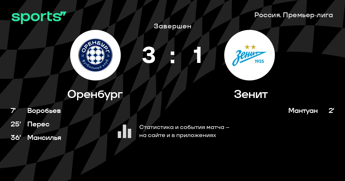 💙 Насколько близки «Зенит» и «Оренбург»?