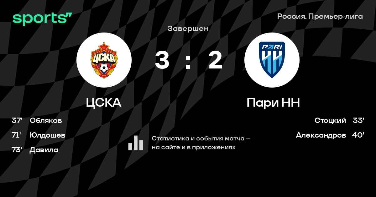 ЦСКА – Пари НН: Пари НН забивает в 3 последних матчах против этого соперника