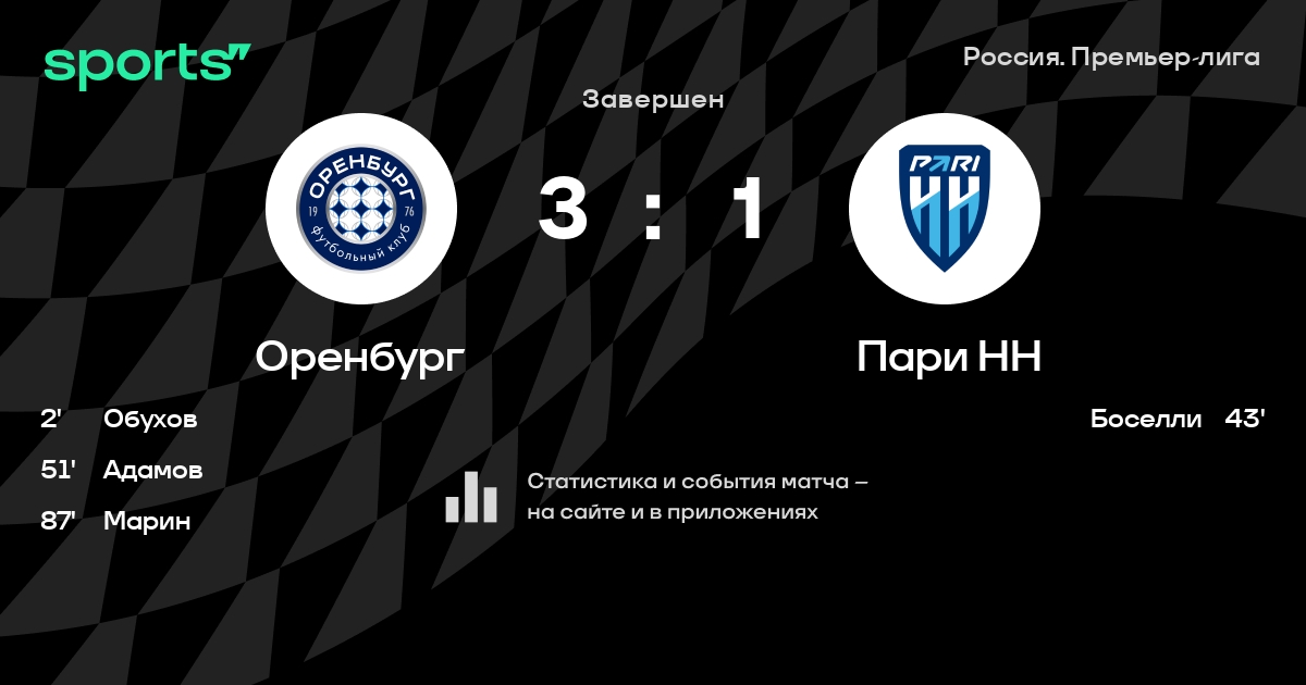 Оренбург – Пари НН: Оренбург забивает в 5 последних матчах против этого соперника