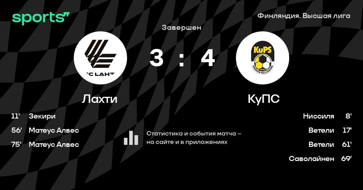 Лахти – КуПС: КуПС не пропускает в 4 последних матчах против этого соперника
