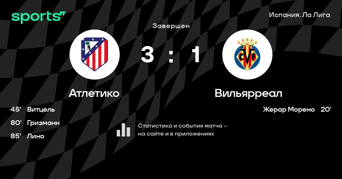 Атлетико – Вильярреал: Вильярреал забивает в 4 последних матчах против этого соперника