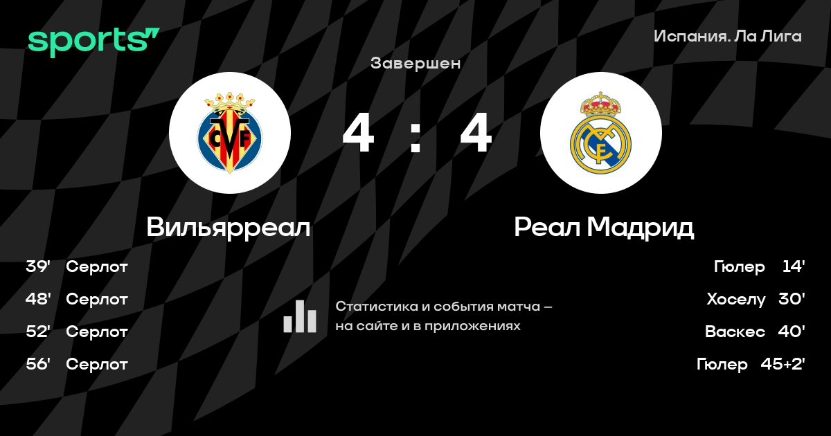 Вильярреал – Реал Мадрид: Вильярреал забивает в 4 последних матчах против этого соперника
