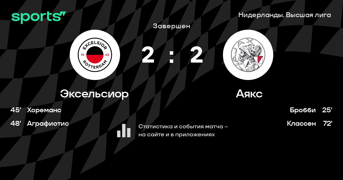 Эксельсиор – Аякс: Эксельсиор забивает в 8 последних матчах против этого соперника