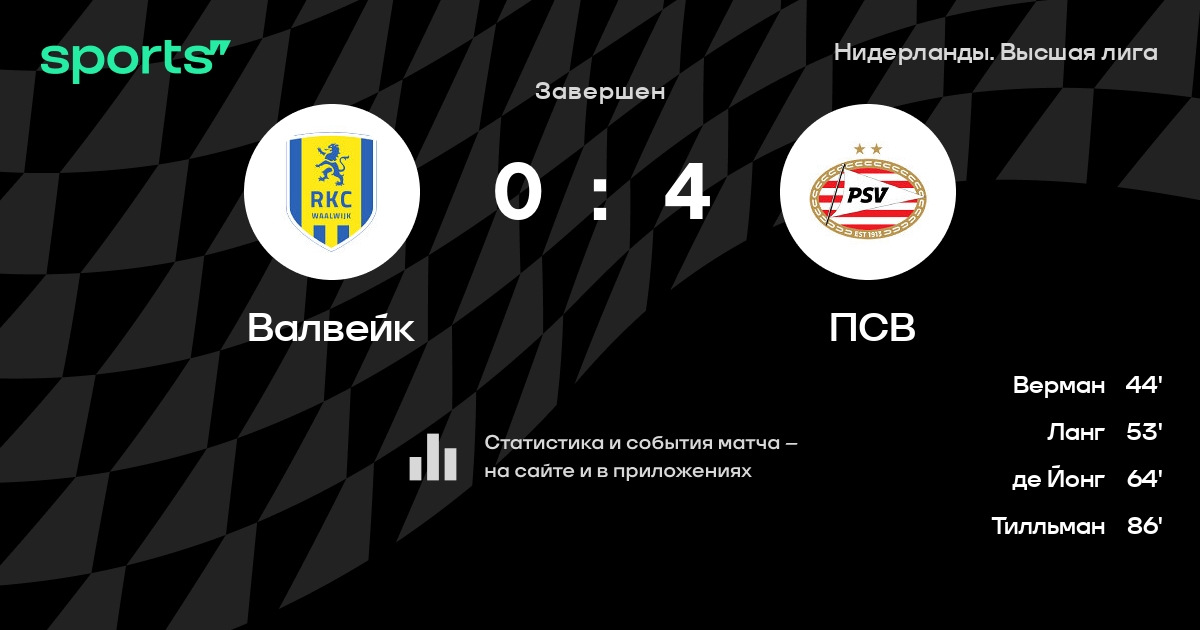 Валвейк – ПСВ: ПСВ побеждает в 7 последних очных матчах