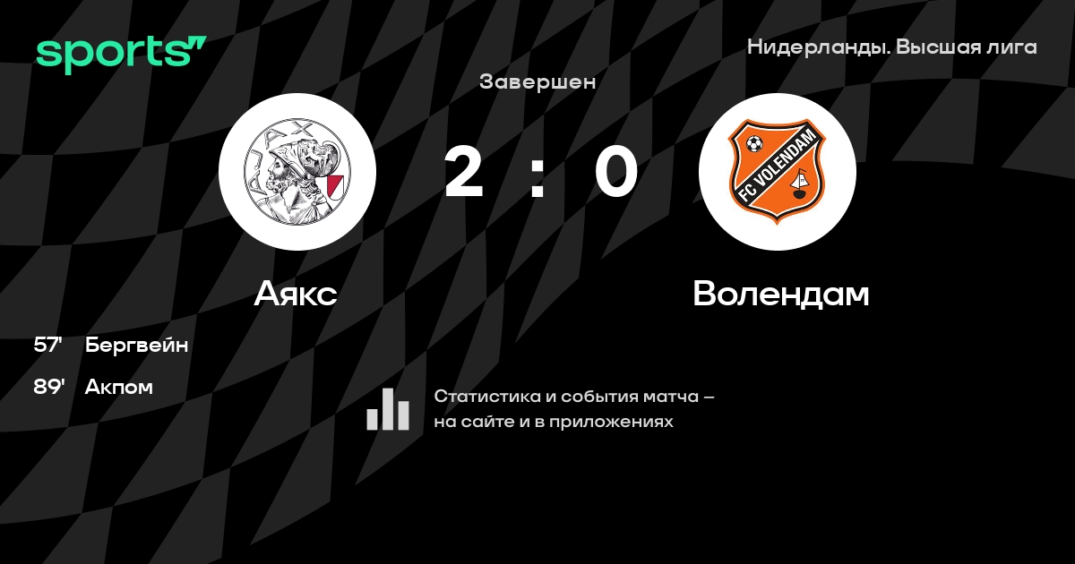 Аякс – Волендам: Волендам забивает в 7 последних матчах против этого соперника