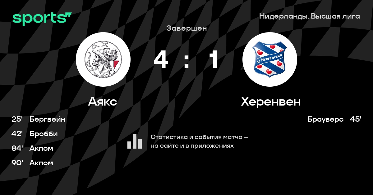 Аякс – Херенвен: Аякс забивает в 30 последних матчах против этого соперника