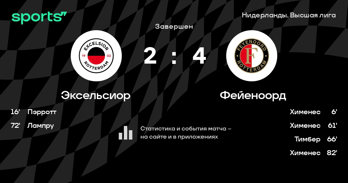 Эксельсиор – Фейеноорд: Фейеноорд забивает в 6 последних матчах против этого соперника