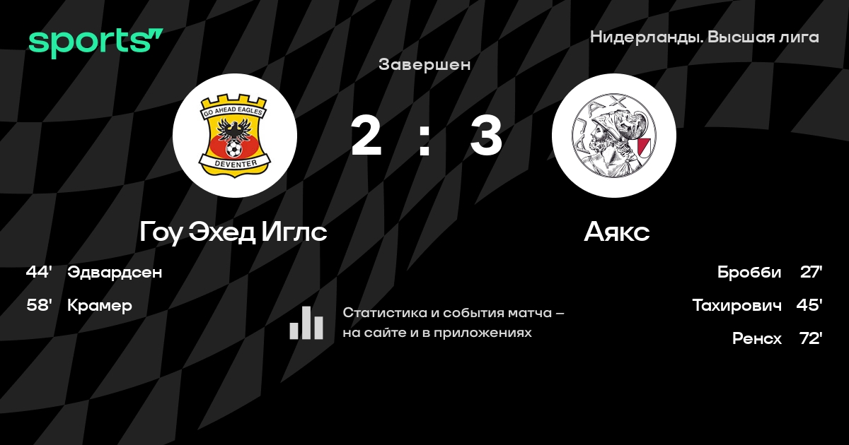 Гоу Эхед Иглс – Аякс: Аякс не проигрывает в 8 из 9 последних матчей против этого соперника в гостях