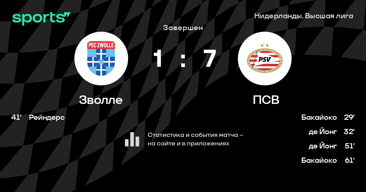 Зволле – ПСВ: ПСВ побеждает в 16 последних очных матчах