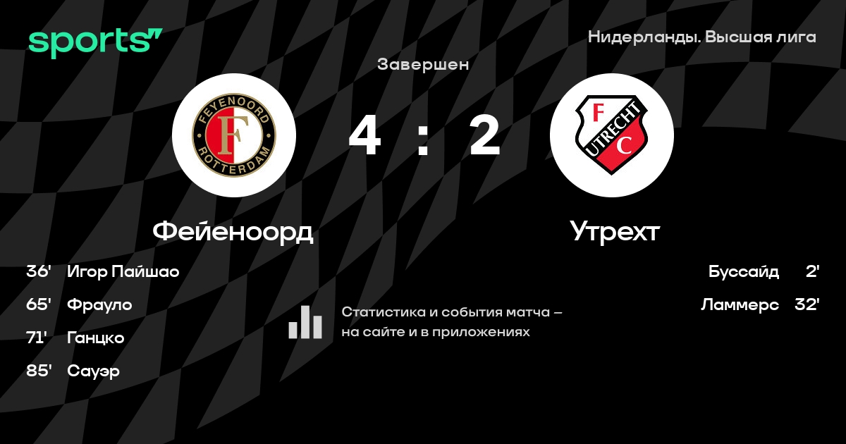 Фейеноорд – Утрехт: Утрехт забивает в 6 последних матчах против этого соперника