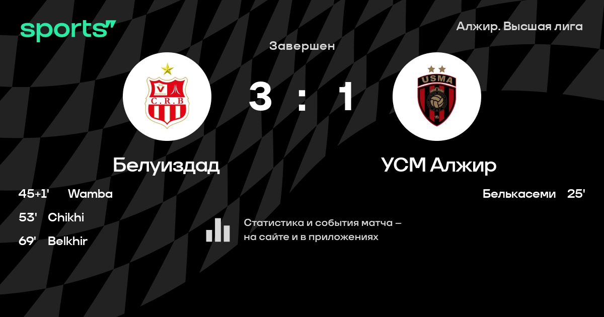 Белуиздад – УСМ Алжир: УСМ Алжир забивает в 7 из 9 последних матчей против этого соперника