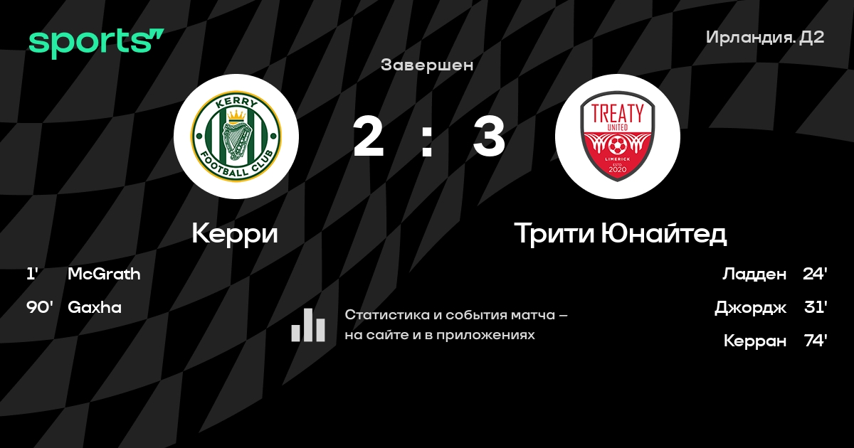 Scully - Samuel Aladesanusi, Kevin Williams, Sean O'Connell, Cian Barrett - Matthew Keane, Ronan Teahan, Sean McGrath - Ryan Kelliher, Gaxha, Nathan GleesonЗапасные: Healy, Kos, Vasiu, Silong, Ainscough, Coughlan, O'Reilly, Amechi, Brosnan
