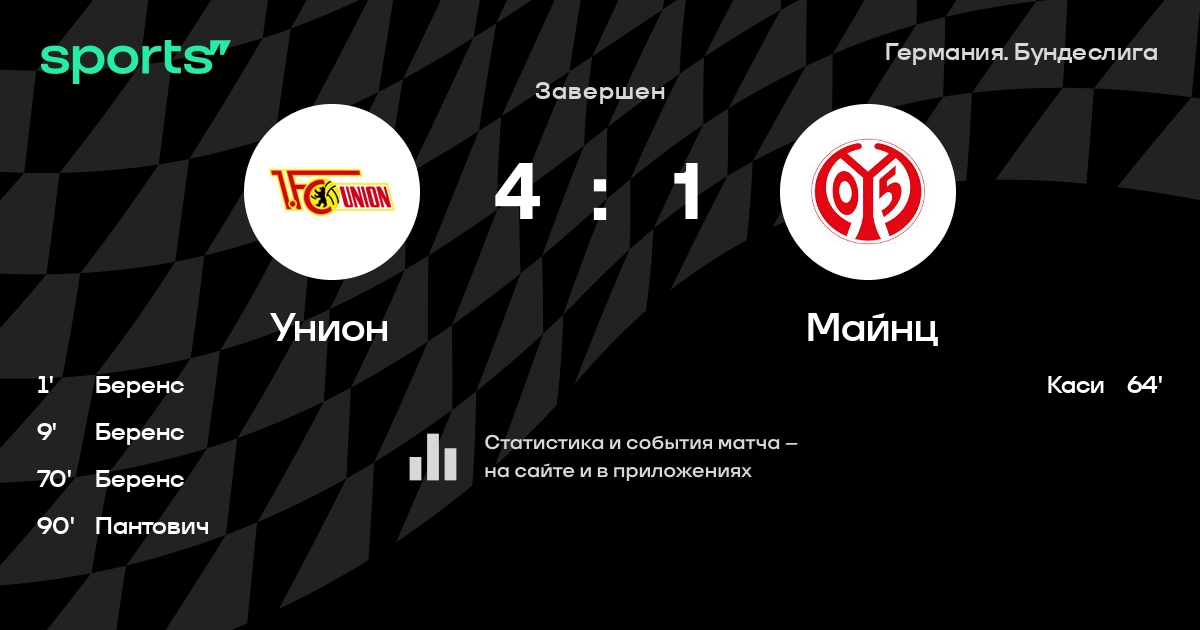 Унион Берлин – Майнц: Унион Берлин не проигрывает в 8 из 10 последних матчей против этого соперника