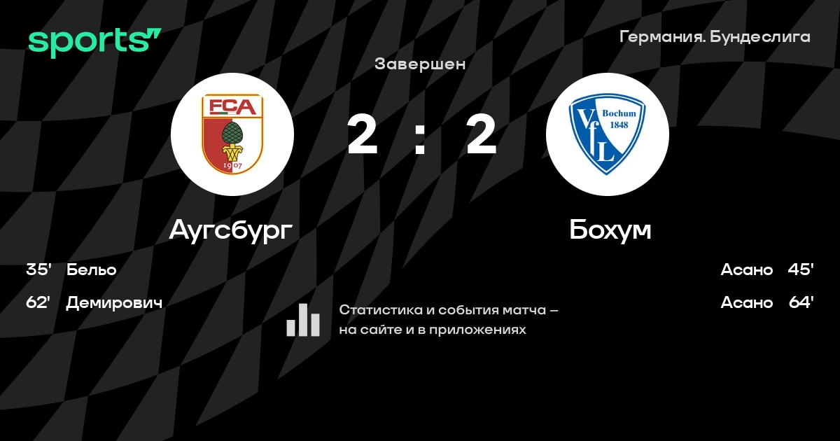 Аугсбург – Бохум: Бохум не проигрывает в 5 из 7 последних матчей против этого соперника