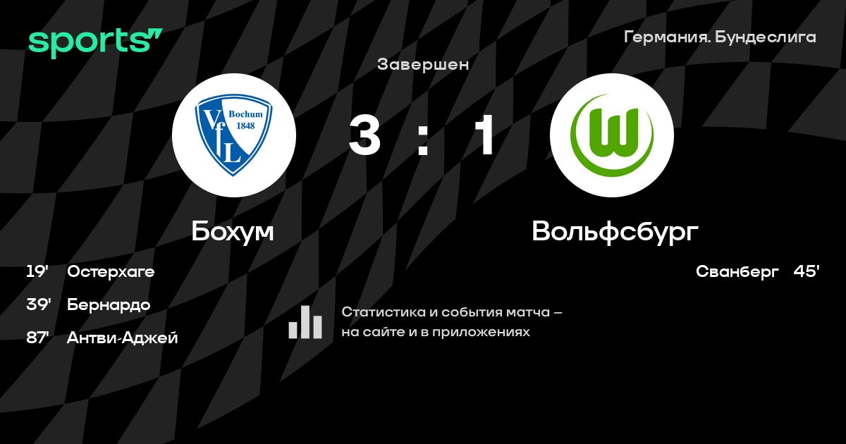 Бохум – Вольфсбург: Бохум не проигрывает в 5 из 7 последних матчей против этого соперника дома