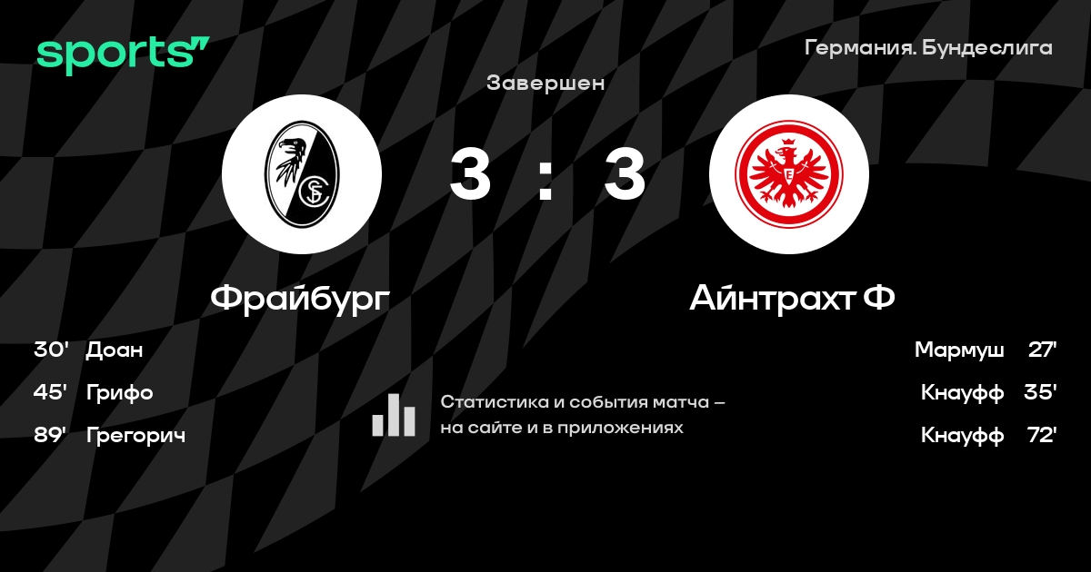 Фрайбург – Айнтрахт Ф: Айнтрахт Ф не проигрывает в 5 из 7 последних матчей против этого соперника в гостях