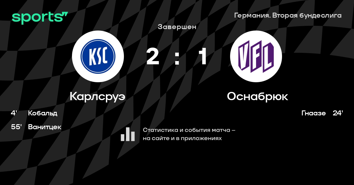 | 5 | Карлсруэ | 34 | 15 | 10 | 9 | 68 | 48 | +20 | 55 | ||