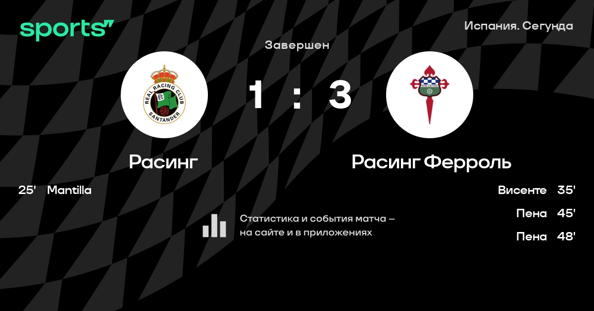 Расинг – Расинг Ферроль: Расинг не проигрывает в 7 последних матчах против этого соперника