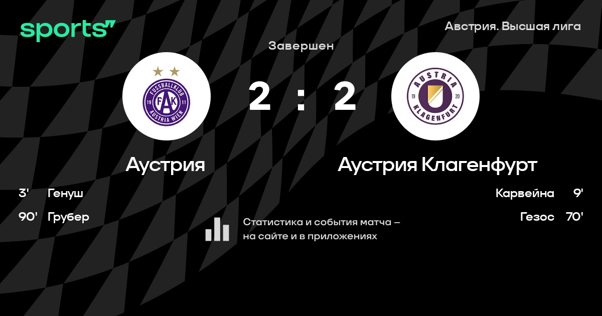Аустрия – Аустрия Клагенфурт: Аустрия Клагенфурт забивает в 6 последних матчах против этого соперника
