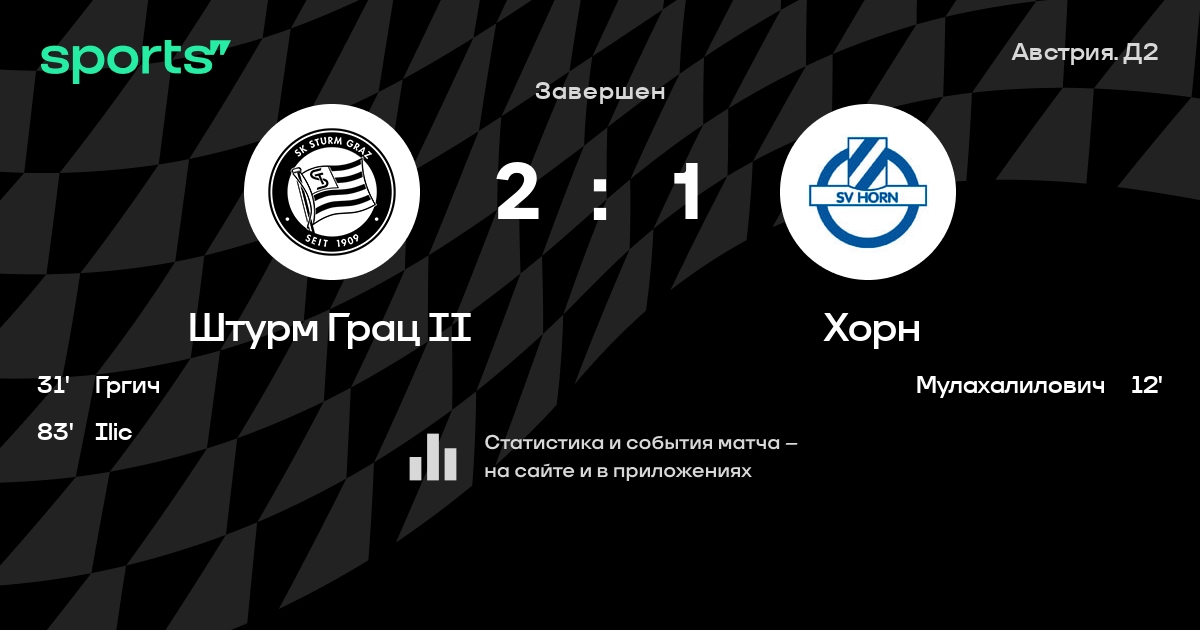 Штурм Грац II – Хорн: Хорн забивает в 3 последних матчах против этого соперника