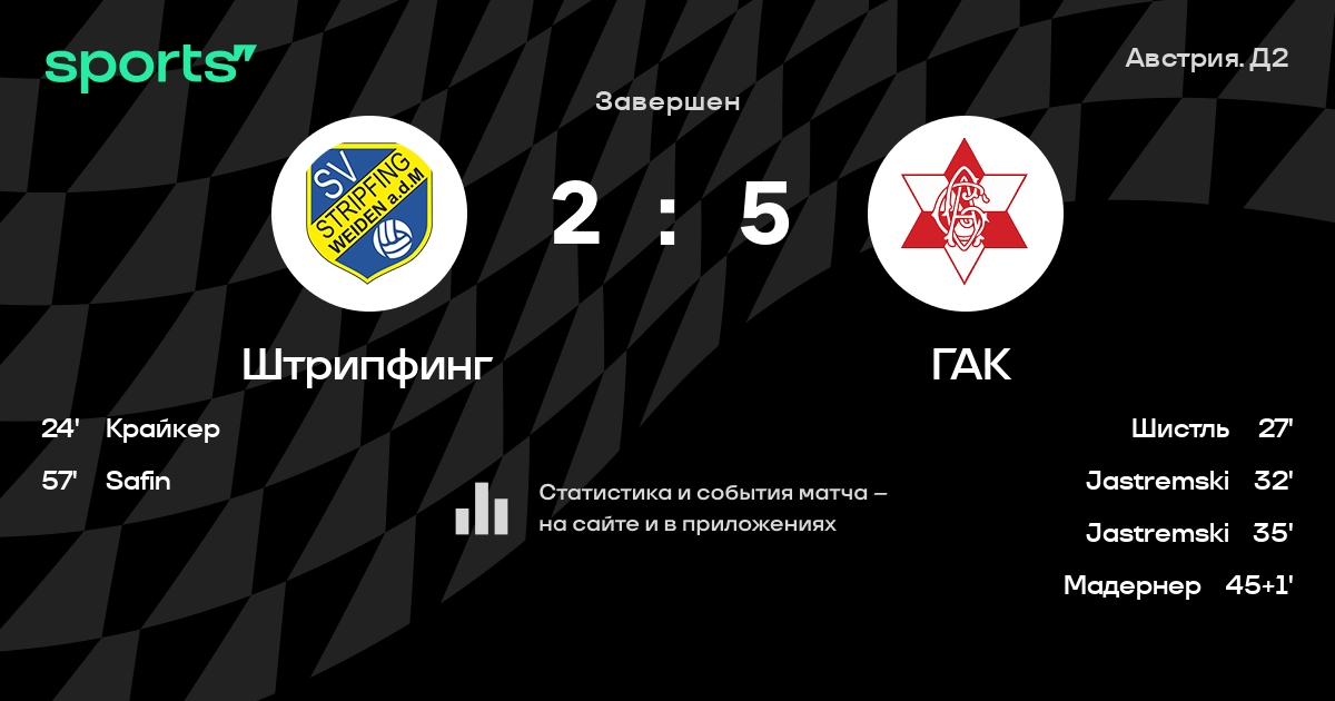 В последних 5 играх ГАК забивает в среднем 1.60 гола за игру