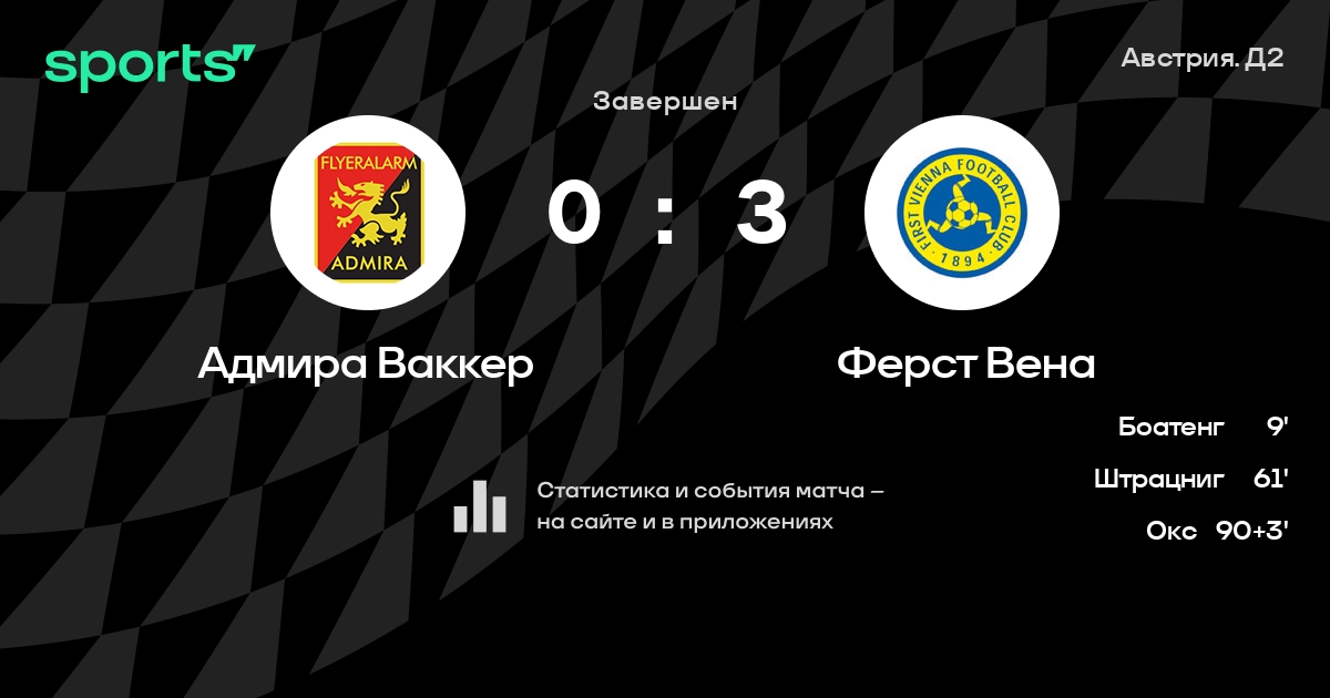 Адмира – Ферст Вена: Ферст Вена не проигрывает в 6 из 8 последних матчей против этого соперника