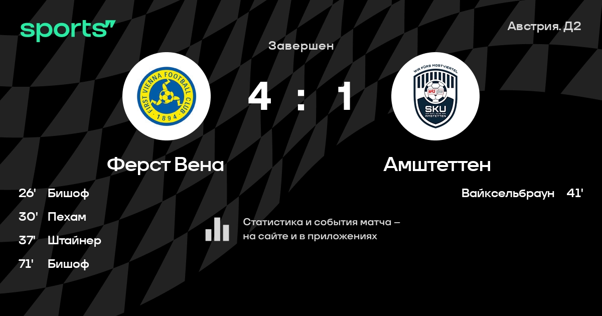 Ферст Вена – Амштеттен: Ферст Вена побеждает в 5 последних очных матчах