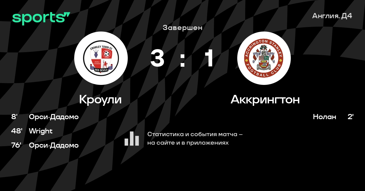 Кроули – Аккрингтон: Кроули забивает в 3 последних матчах против этого соперника