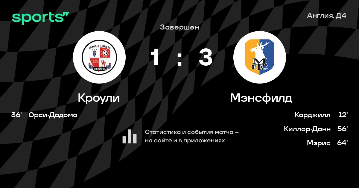 Кроули – Мэнсфилд: Кроули забивает в 6 из 8 последних матчей против этого соперника