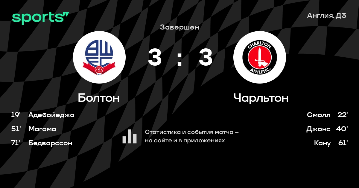 Болтон – Чарльтон: Чарльтон забивает в 6 из 8 последних матчей против этого соперника