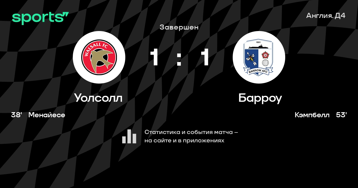 Уолсолл – Барроу: Барроу побеждает в 3 последних очных матчах