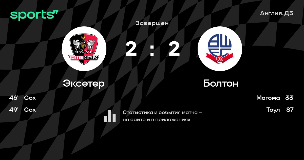 Эксетер – Болтон: Болтон побеждает в 3 последних очных матчах
