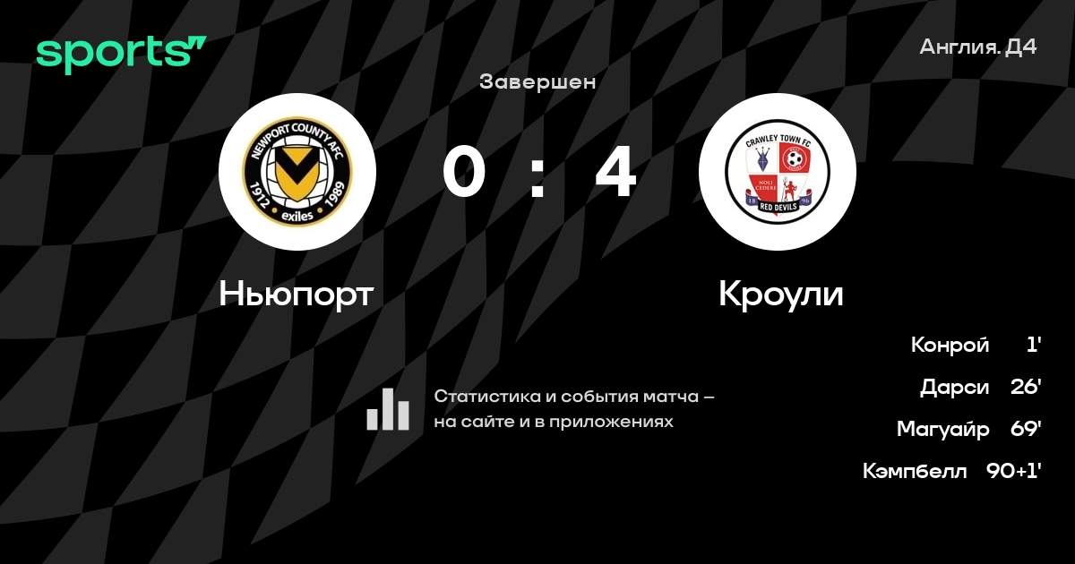 Ньюпорт – Кроули: Кроули забивает в 5 последних матчах против этого соперника