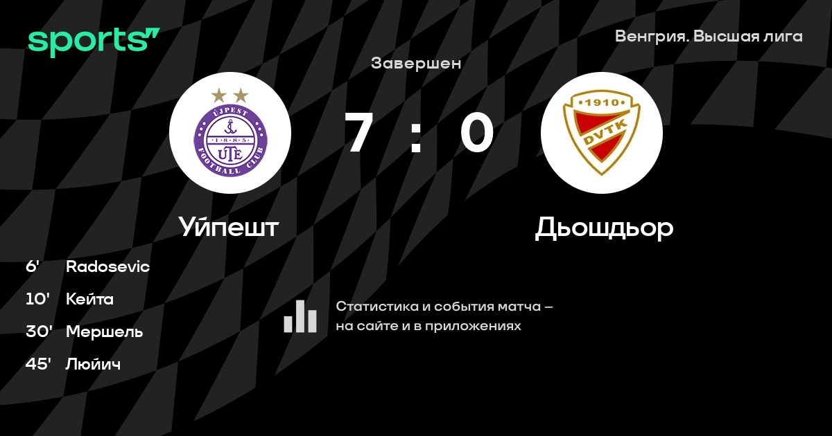 Уйпешт – Дьошдьор: Уйпешт не проигрывает в 6 последних матчах против этого соперника