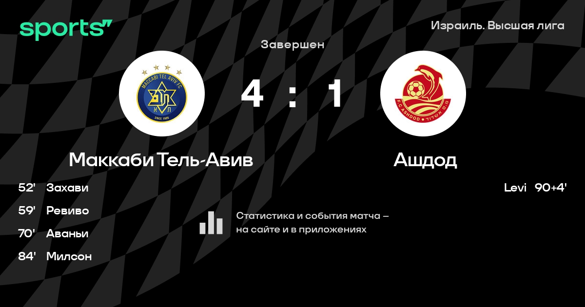| 1 | Маккаби Тель-Авив | 36 | 26 | 7 | 3 | 75 | 25 | +50 | 85 | ||