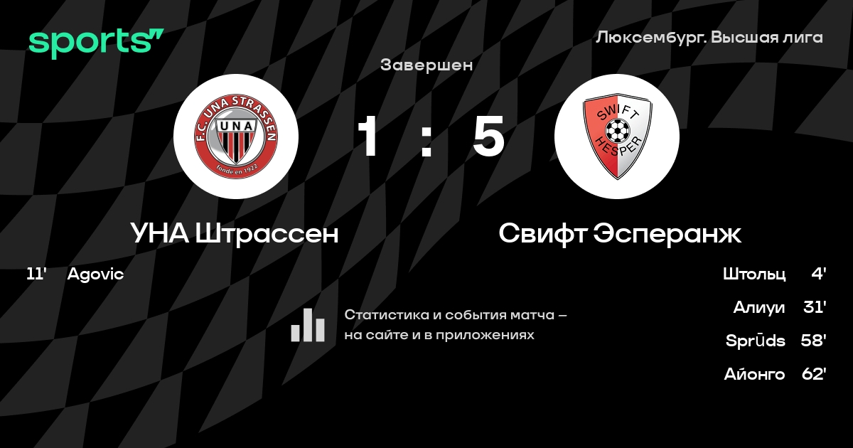 УНА Штрассен – Свифт Эсперанж: Свифт Эсперанж не пропускает в 3 последних матчах против этого соперника