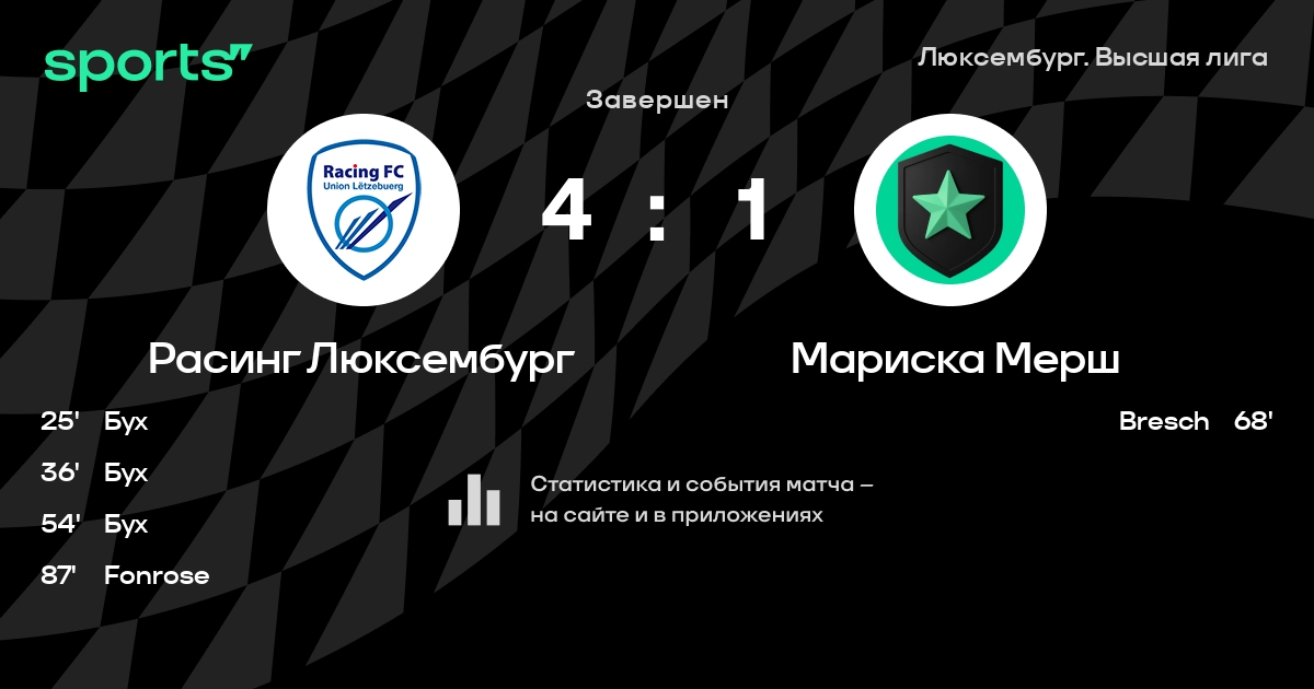 В последних 5 играх Расинг Люксембург забивает в среднем 1.20 гола за игру