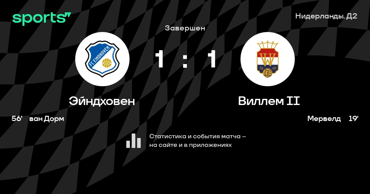 Эйндховен – Виллем II: Виллем II не проигрывает в 5 из 6 последних матчей против этого соперника в турнире «Первый дивизион»