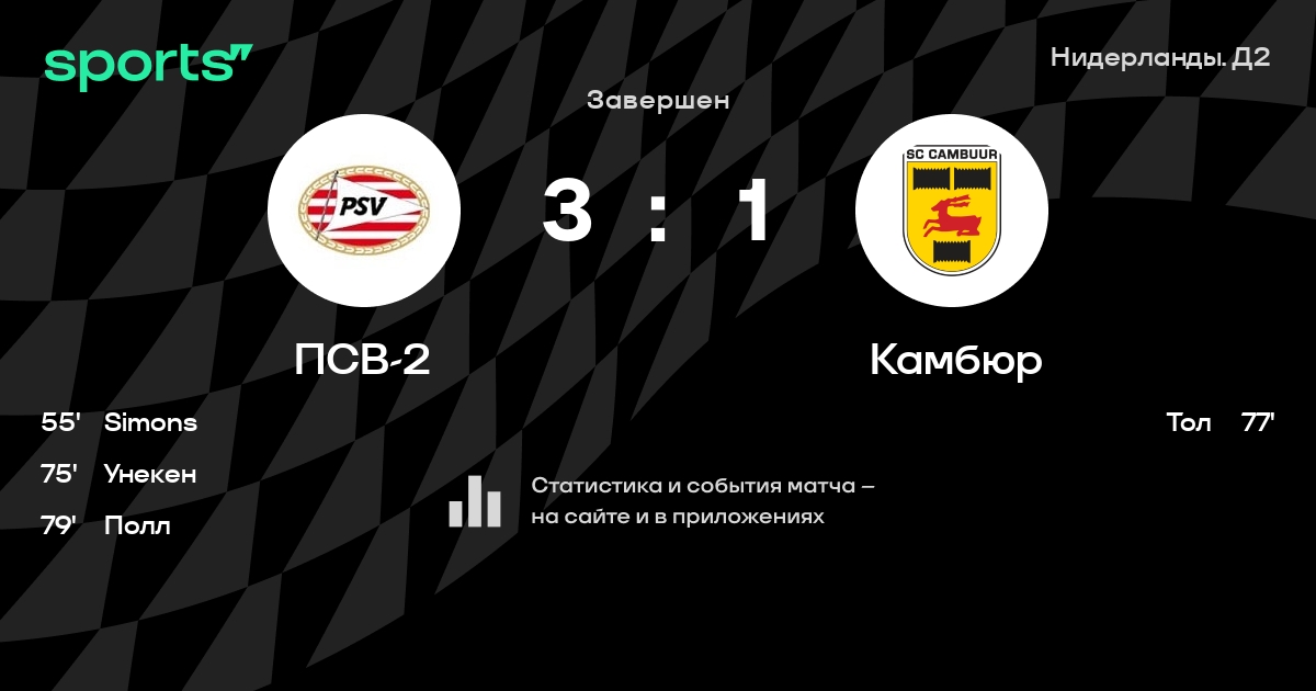 ПСВ-2 – Камбюр: Камбюр не проигрывает в 7 из 9 последних матчей против этого соперника