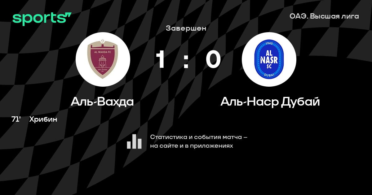 Аль-Вахда – Аль-Наср Дубай: Аль-Вахда не проигрывает в 9 последних матчах против этого соперника
