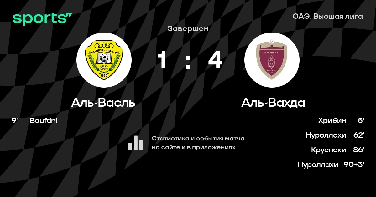 Аль-Васль – Аль-Вахда: Аль-Вахда забивает в 8 последних матчах против этого соперника