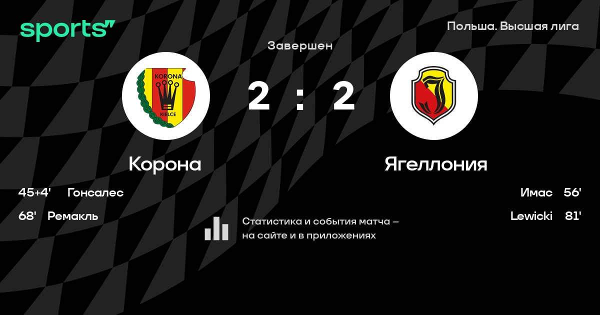 Корона – Ягеллония: Ягеллония не проигрывает в 8 из 10 последних матчей против этого соперника в гостях