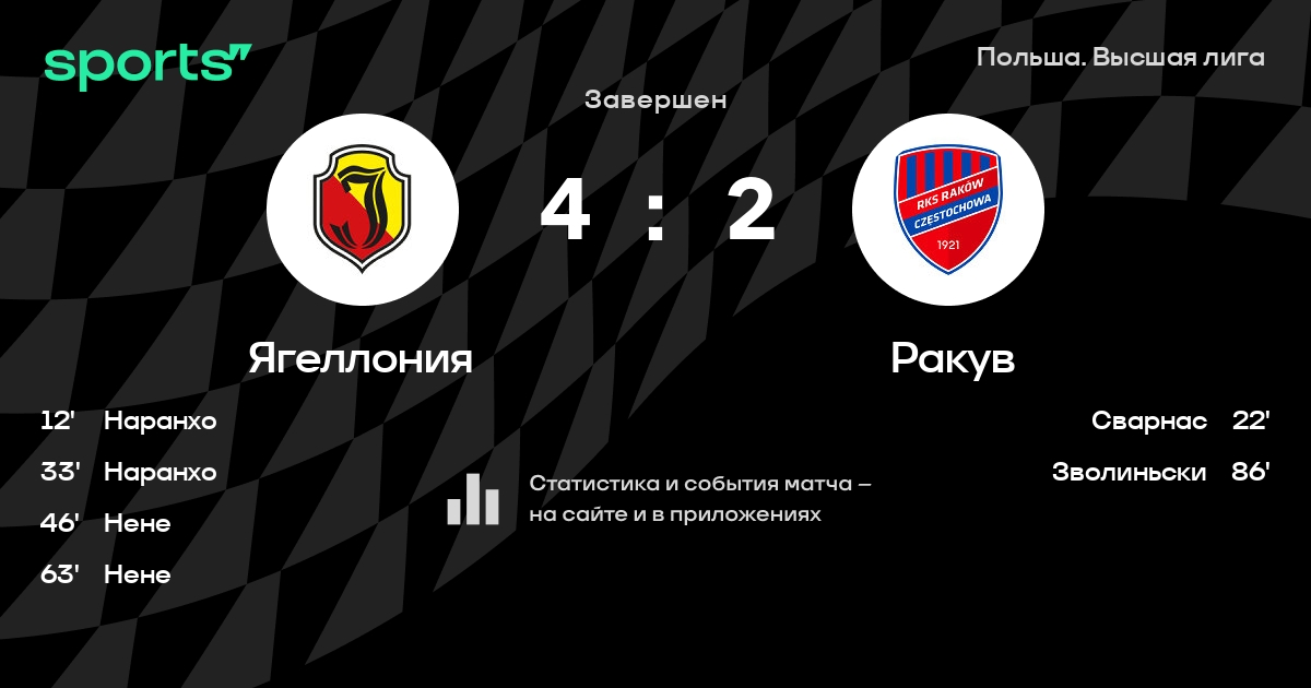Ягеллония – Ракув: Ракув забивает в 4 последних матчах против этого соперника