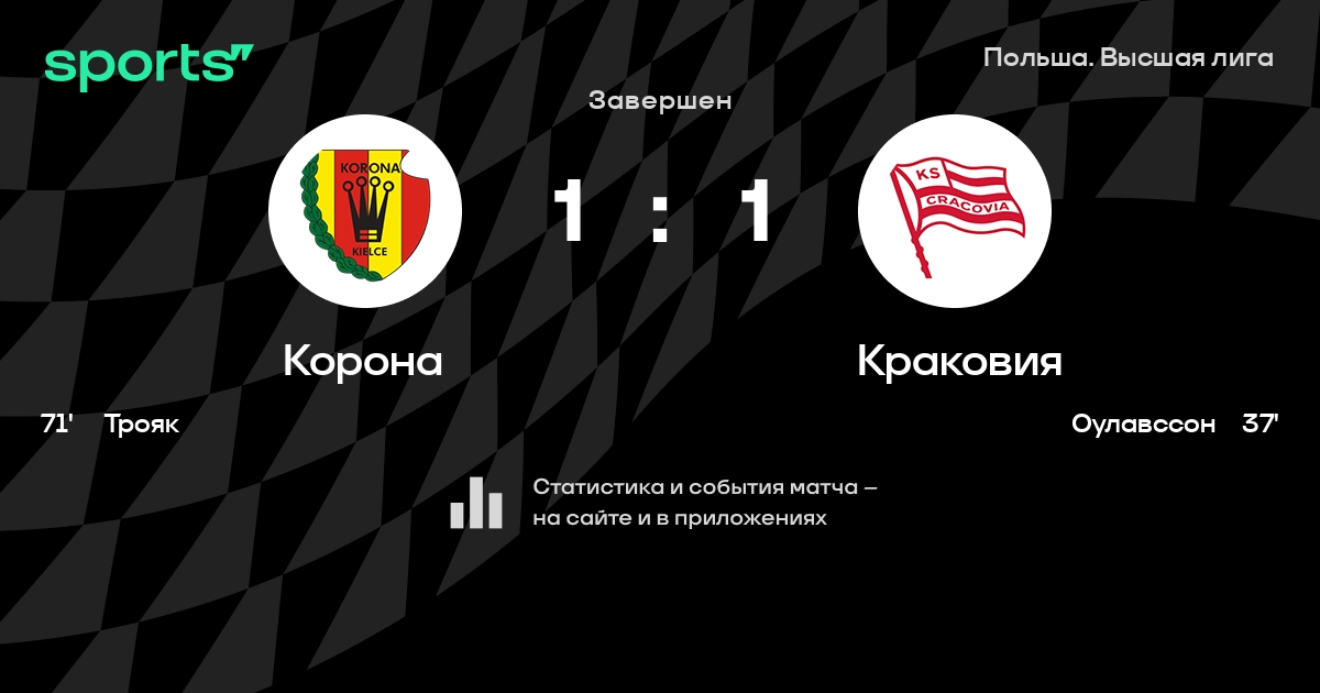 Краковия не выигрывает в 7 последних матчах в гостях в турнире «Высшая лига»