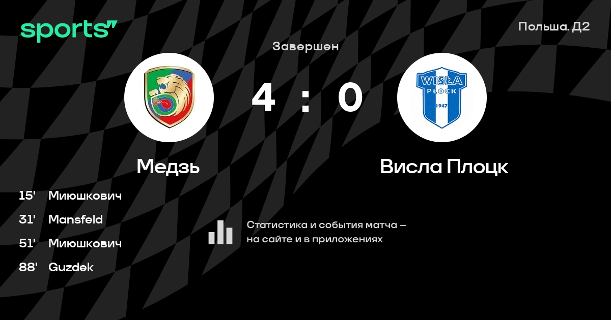 Медзь – Висла Плоцк: Медзь забивает в 5 последних матчах против этого соперника