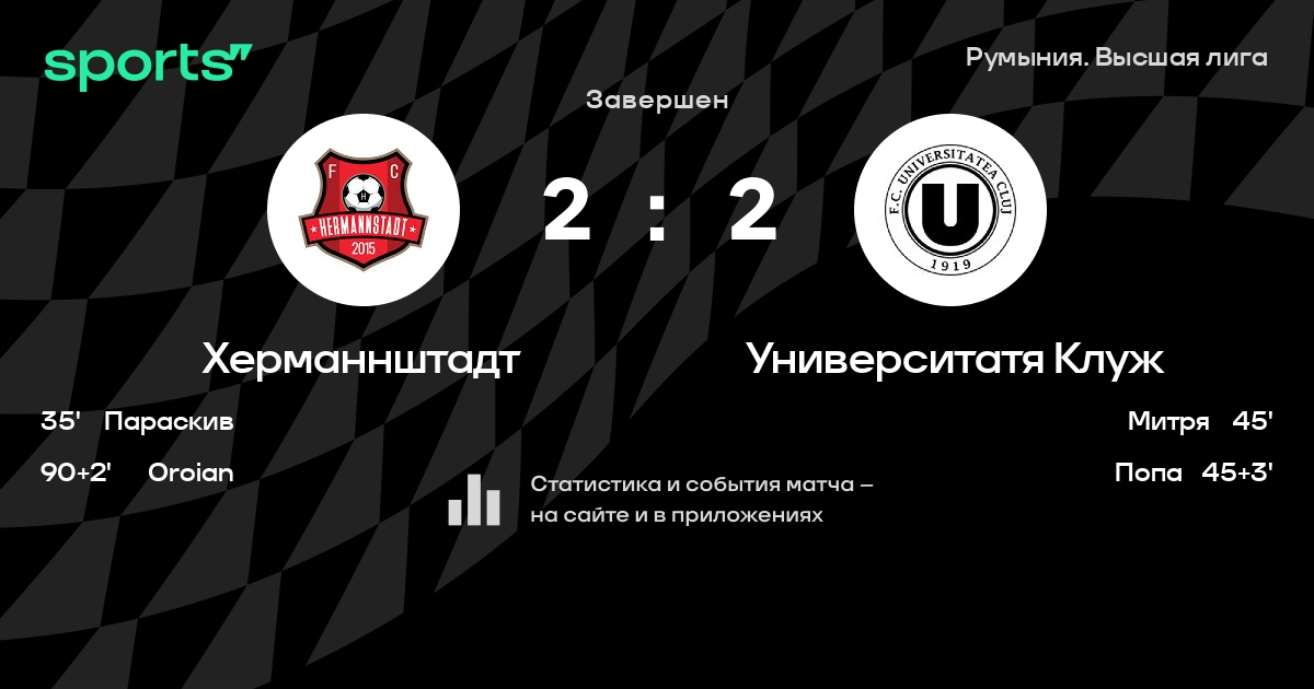 Херманнштадт – Университатя Клуж: Университатя Клуж забивает в 6 последних матчах против этого соперника