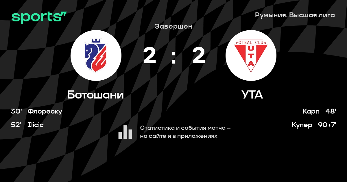 Ботошани – УТА: Ботошани забивает в 4 последних матчах против этого соперника