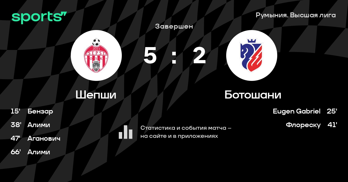Шепши – Ботошани: Шепши не проигрывает в 5 из 7 последних матчей против этого соперника